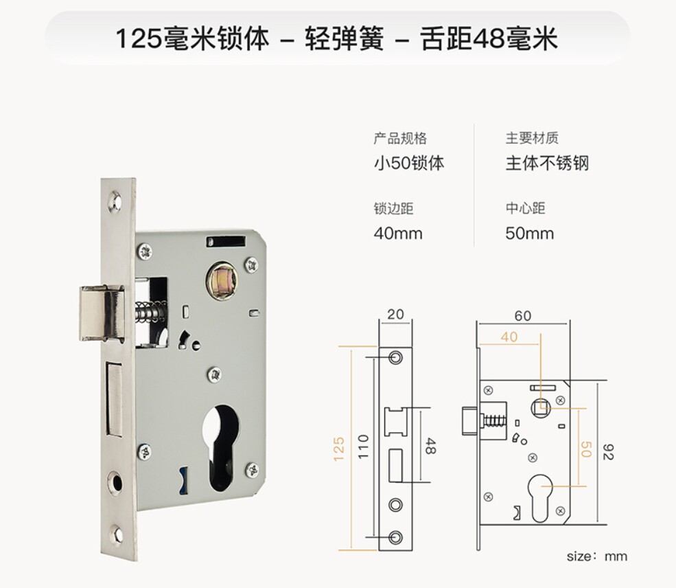 锁舌材质 不锈钢 锁舌类型 双锁舌