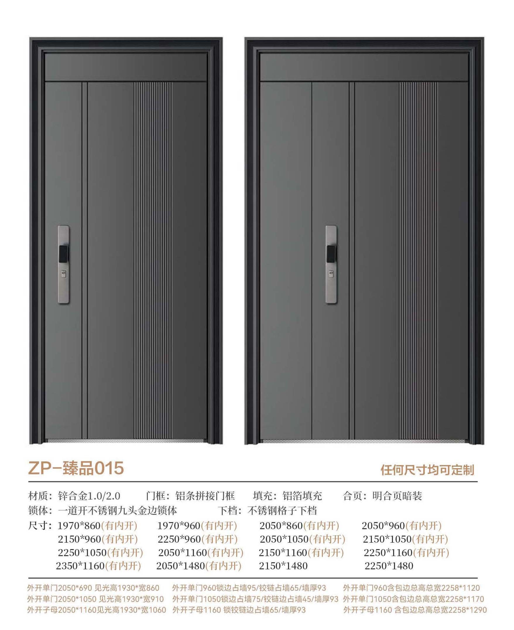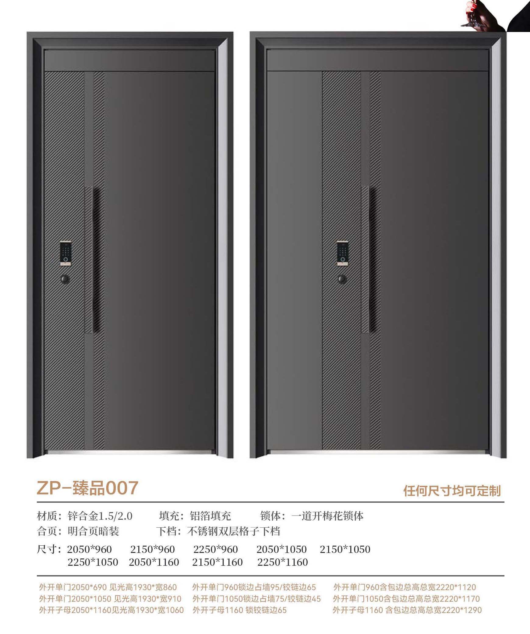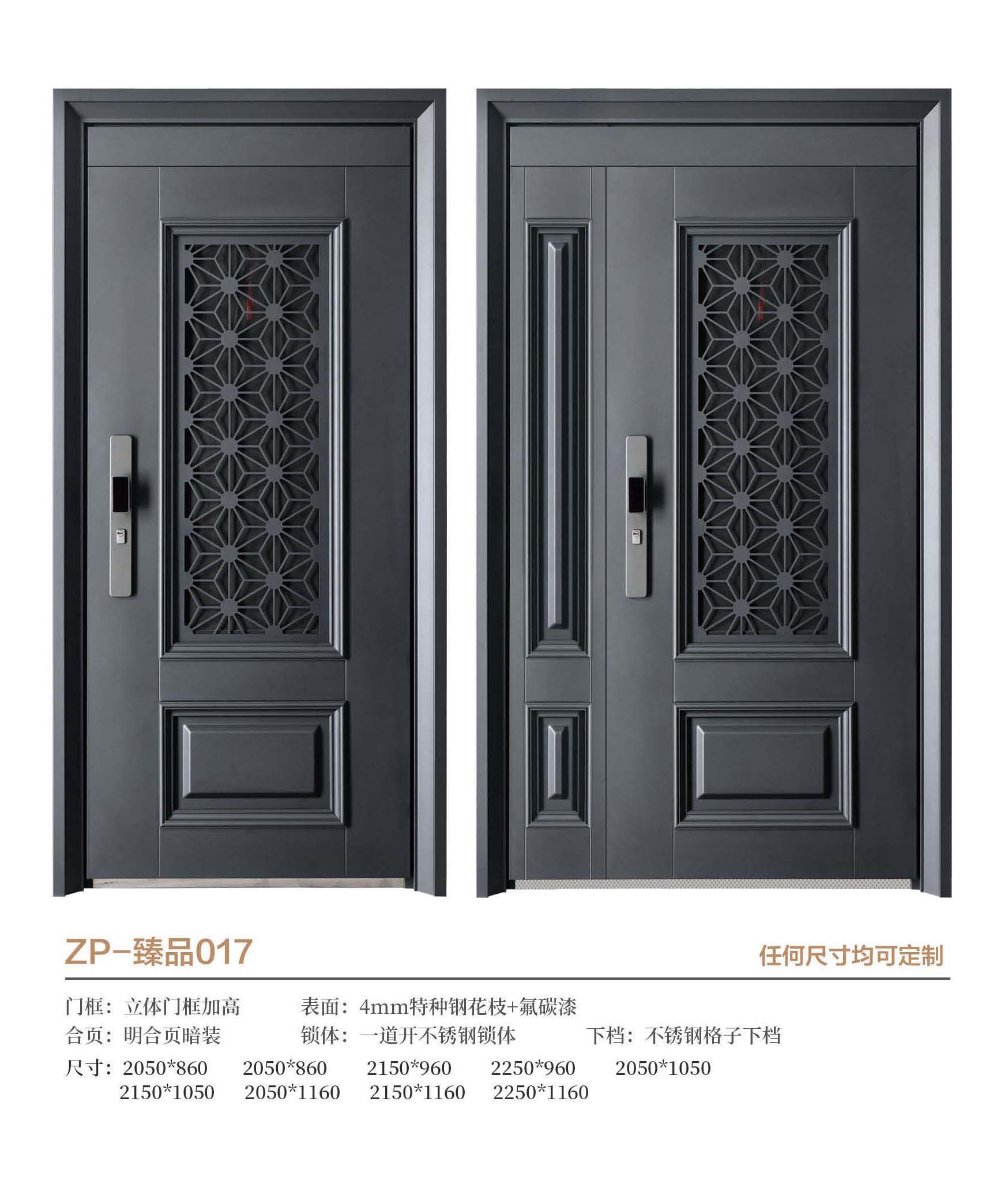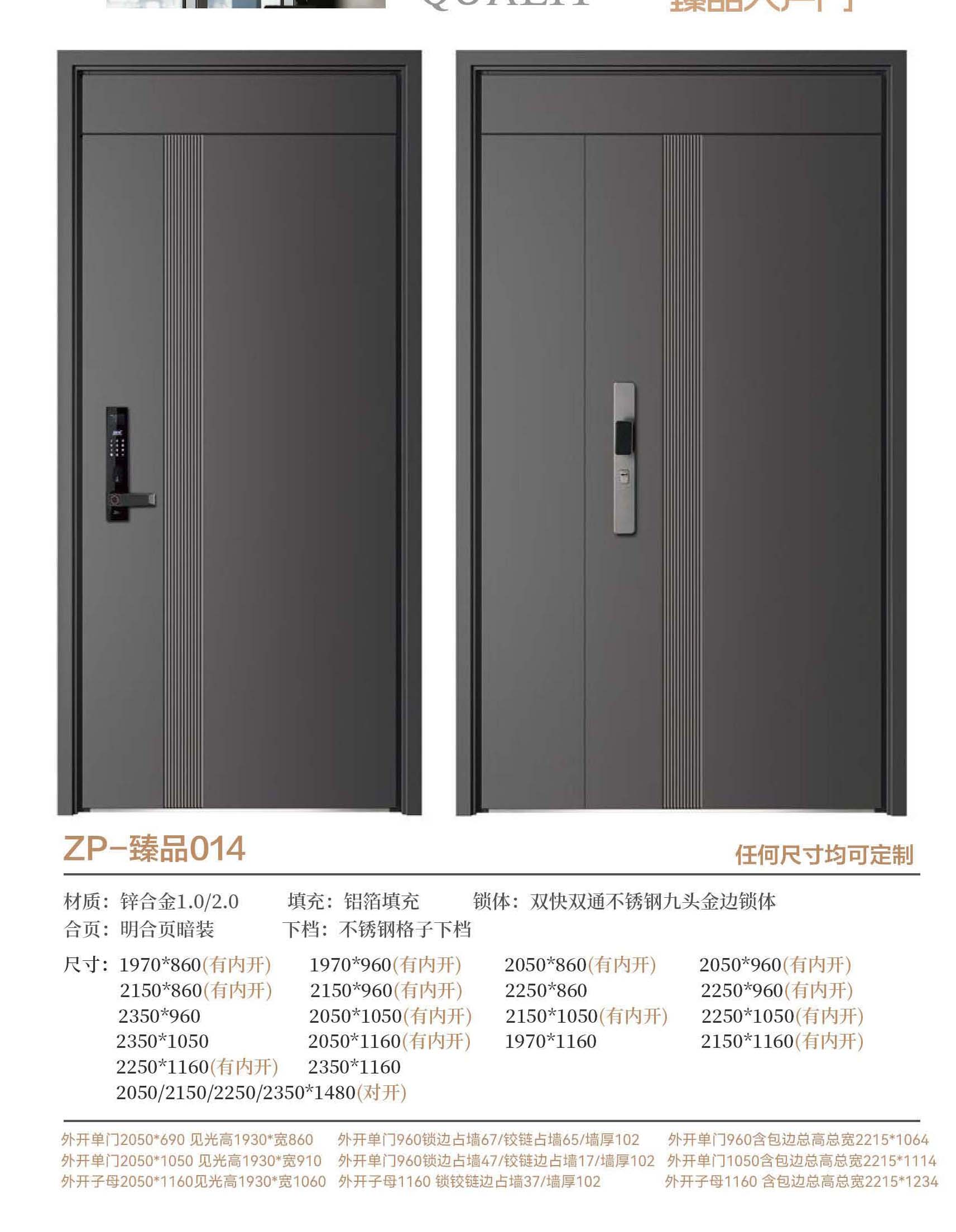 精雕1号到精雕4号 和020为前面板有3MM铝板,在永川包运输,包安装的价格为2980元。其它为锌合金甲级防盗门。特惠款为永川包运输 包安装、1380元。