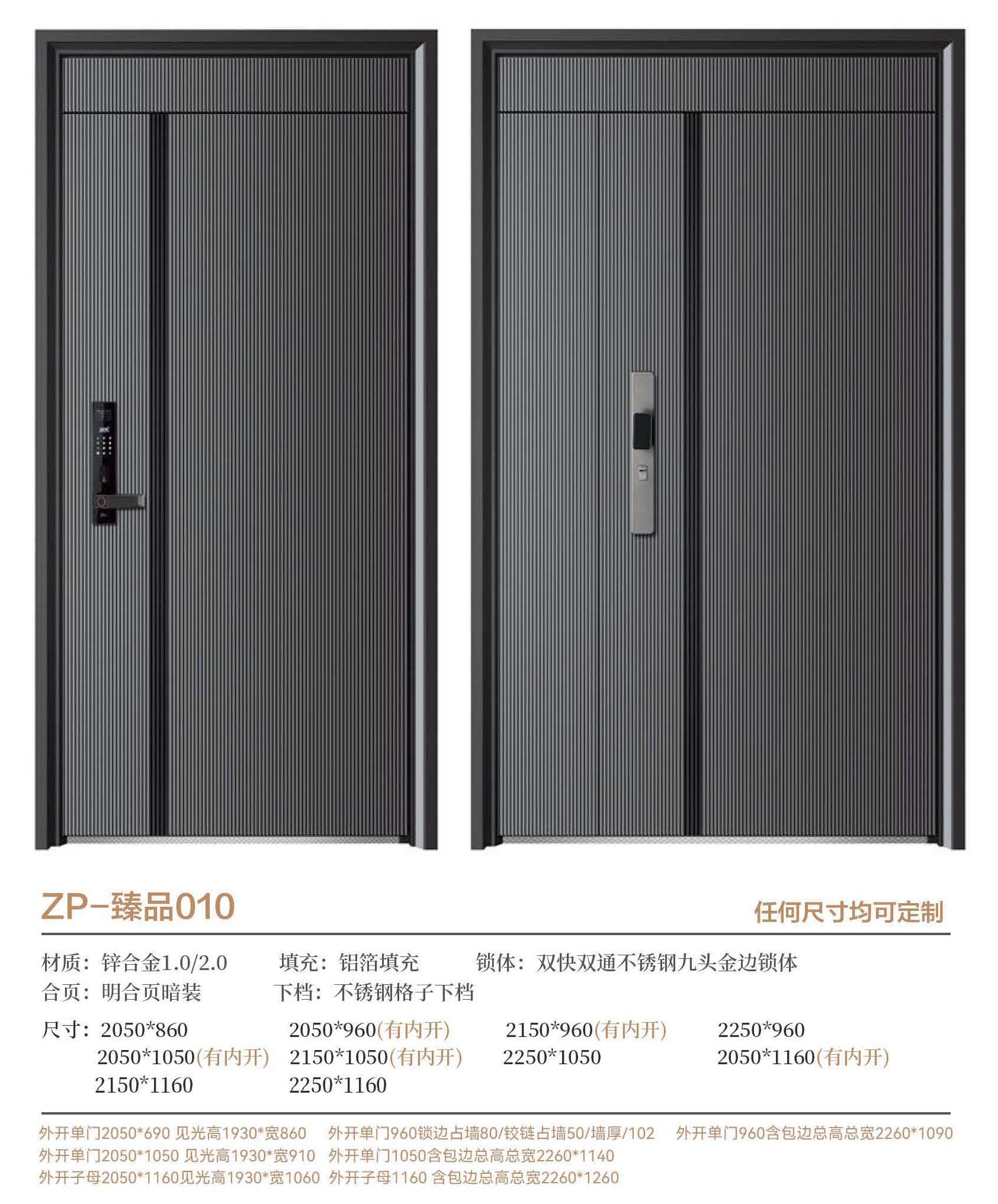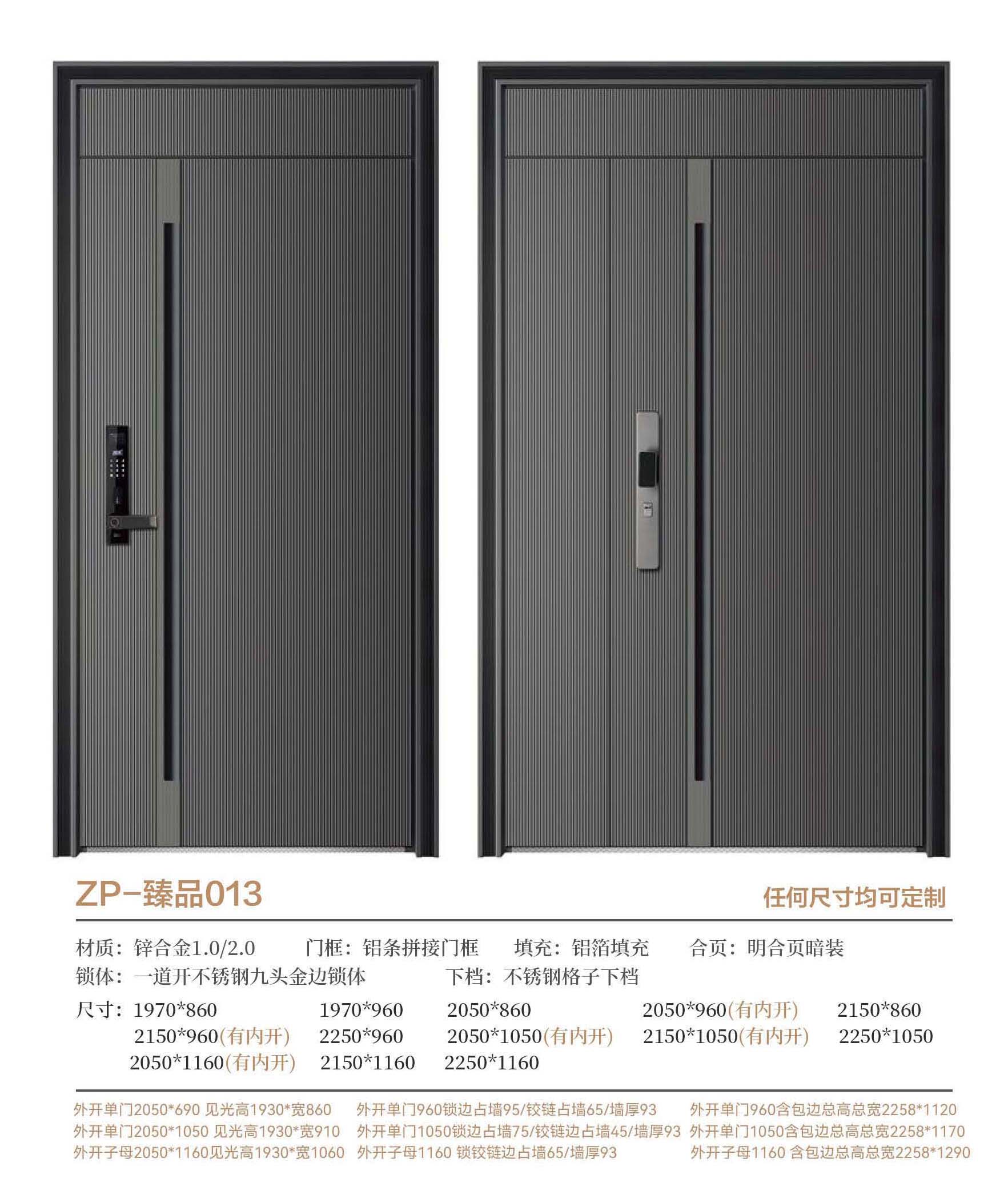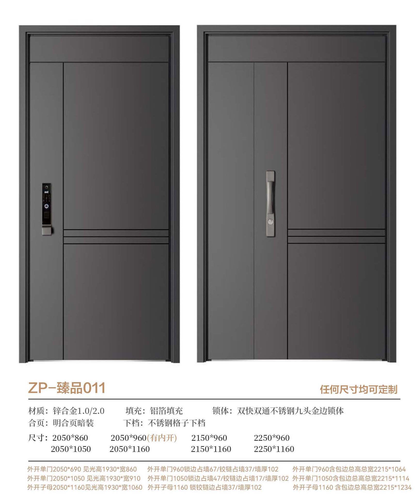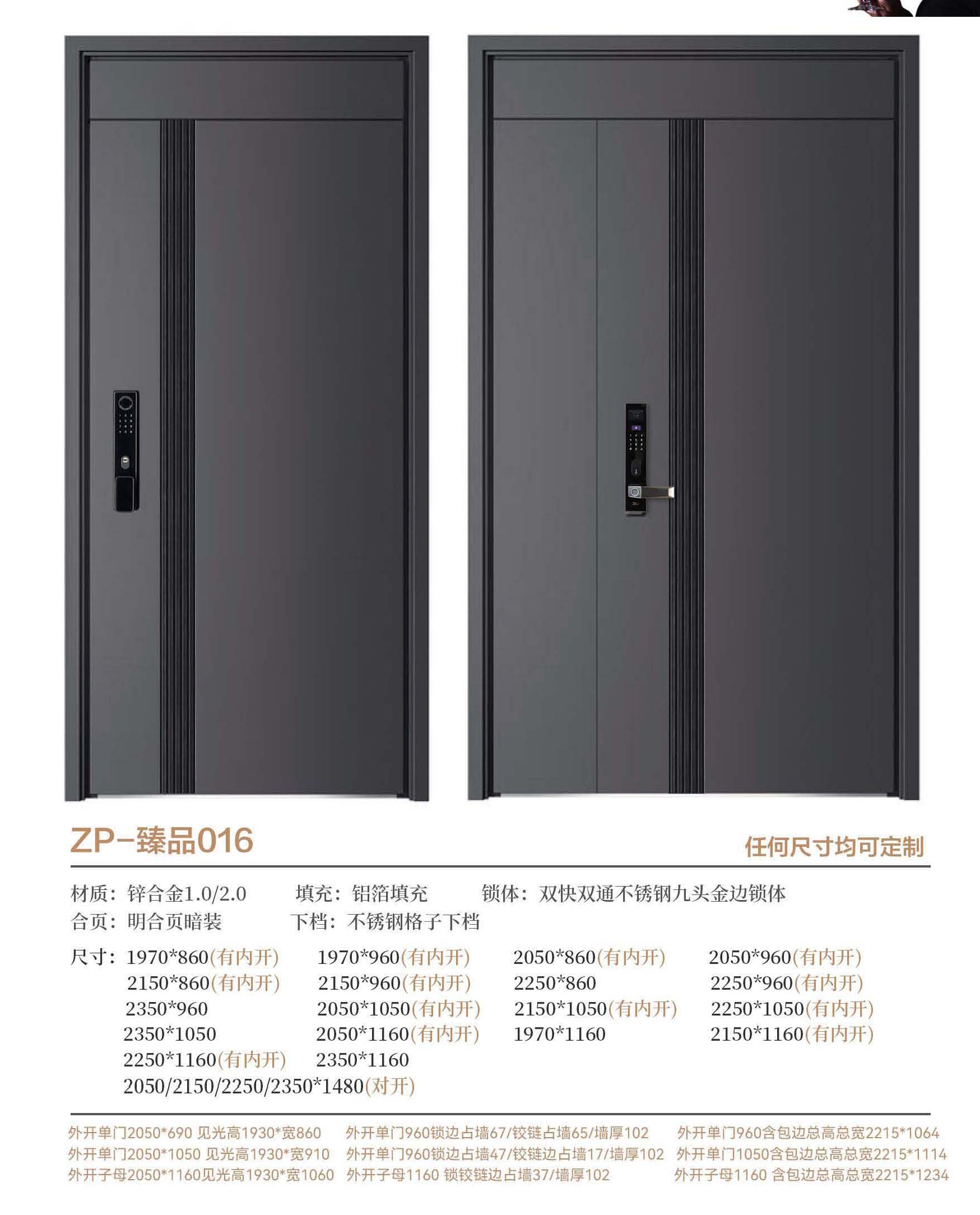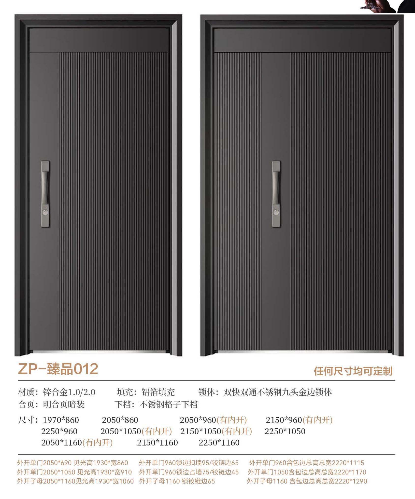 精雕1号到精雕4号 和020为前面板有3MM铝板,在永川包运输,包安装的价格为2980元。其它为锌合金甲级防盗门。特惠款为永川包运输 包安装、1380元。