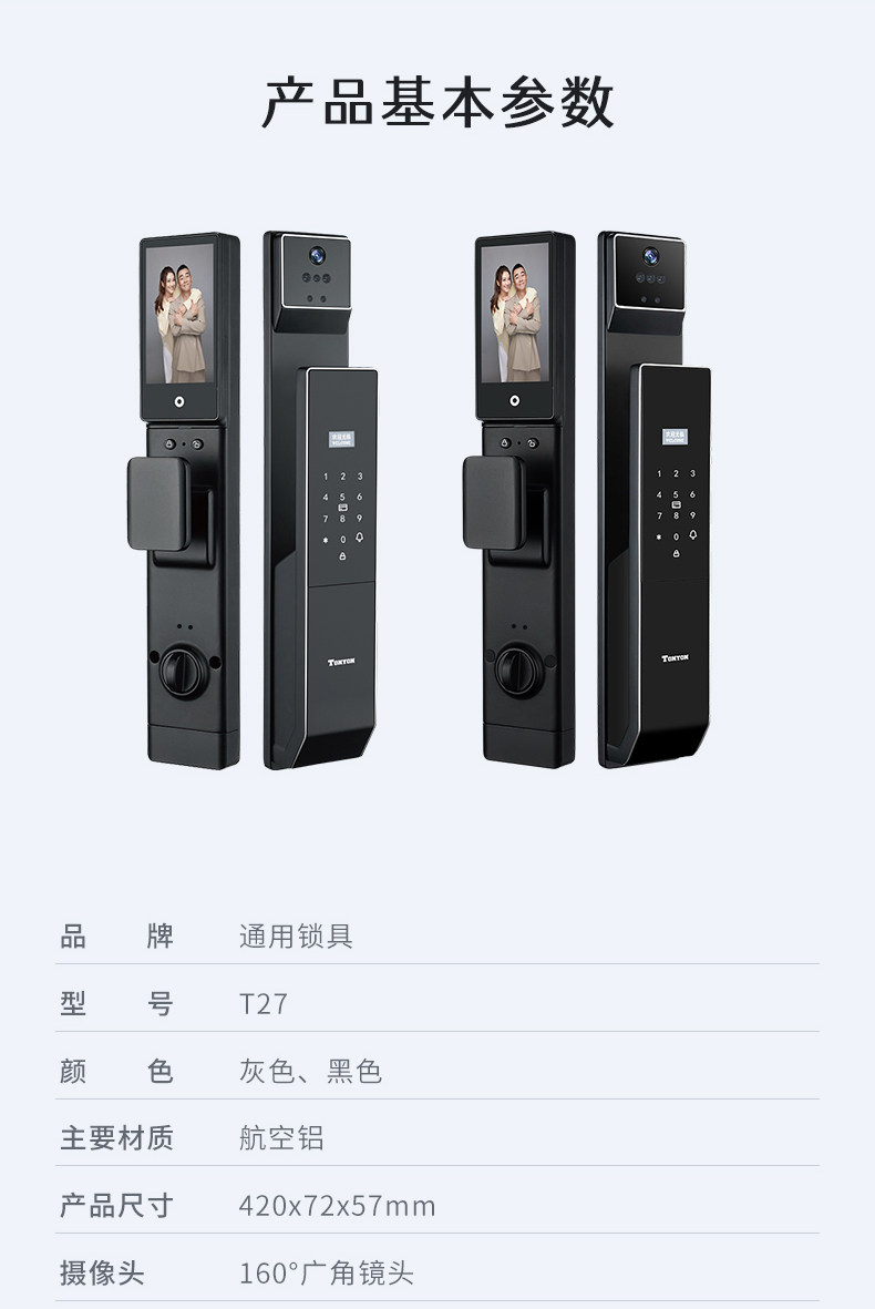 饰面颜色 T27黑色(掌静脉-人脸识别-主动监控)